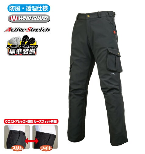 カーゴパンツの機動力、機能性に安全性を高める腰と、膝プロテクションを標準装備した ウインターパンツです。