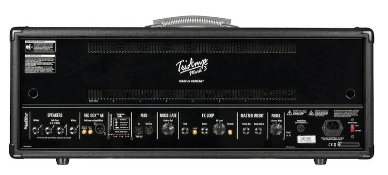 【Channels】■Amp 1 □Channel A:= Sparkling 50th Californian Clean □Channel B:= Chimy 60th British Clean■Amp 2. □Channel A:= Classic 70th British Lead □Channel B:= Brown 80th British Lead■Amp 3. □Channel A:= Classic 90th American High Gain □Channel B:= Latter day High Gain and beyond【TRIAMP MARK3 Specifications】Power Amp :All Tube (as shipped):2×EL34、4×6L6GC、150W (max) 4Ω/8Ω/16ΩPre Amp:8×ECC83、1×12AX7A-CChannels:AMP1(A+B)、AMP2(A+B)、AMP3(A+B)Controls:Gain & Master、3-Band EQ (each ch A&B )、Volume、Presence & ResonanceSwitches:Channel Select、Power Amp Select (1/2、3/4、5/6)、Stomp Boost、FX Loop、Noise Gate、MIDI LearnRear Panels:Speaker out、Red Box DI Out(Cabinet Mode2/Low-Cut)、TSC(Tube Safety Control)、MIDI (In、Out/Thru)、Noise Gate Level、FX Loop Level (-10dB & FX Serial SW)、Master Insert、Panel Level (Dark Bright )Foot Switch:MIDI Board TSM432 (Included)、Functions: Preset Mode - 32 banks、4 presets、FX / Stomp Box Mode - Channels、BoostDimensions:740 × 393 × 254 mm / 22kg